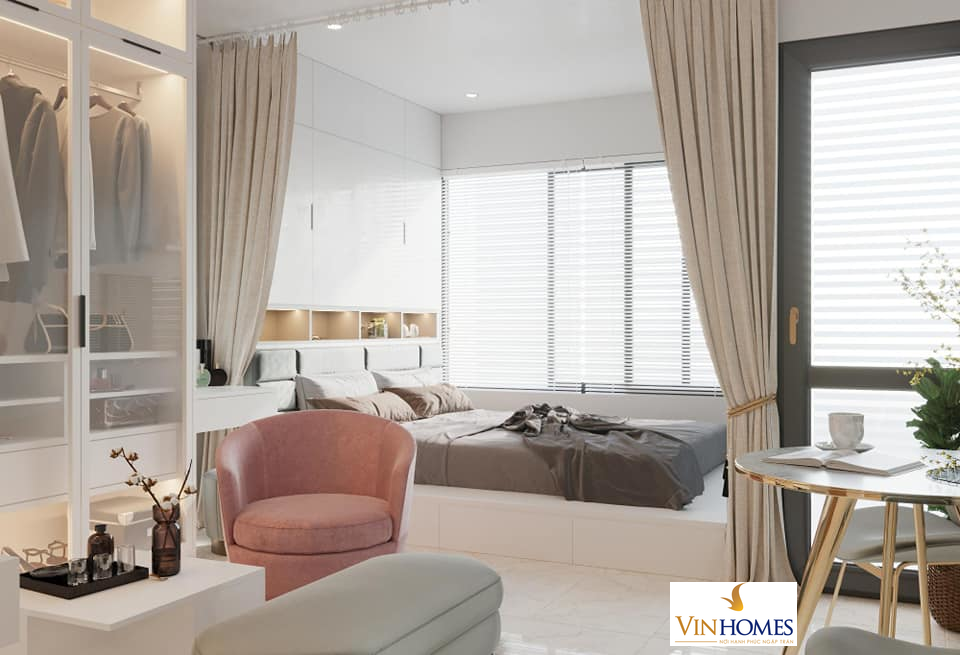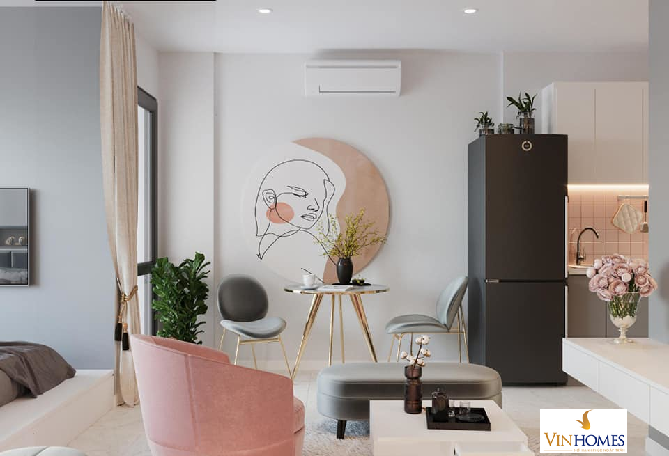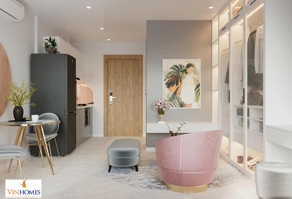 Mẫu 04: Căn Studio vinhomes quận 9 S5.03xx15 được kiến trúc sư thiết kế với màu sắc trang nhã và nữ tính