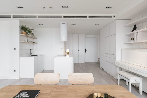 Căn hộ 2 phòng ngủ cộng Vinhomes – Tối giản với tông trắng
